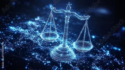 illustration, law, scale, scale, justice, gavel, judge, blue, futuristic, monochrome, technology, background, legal, balance, symbol, court, order, system, abstract, digital, concept, blue background, abstract design, digital artwork, abstract art