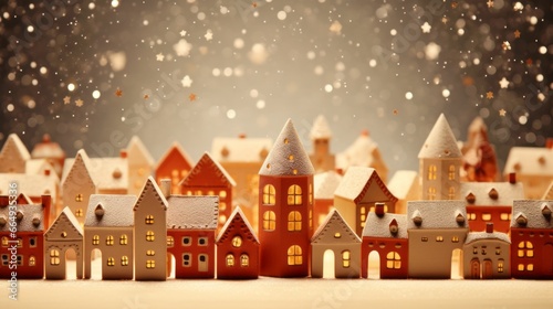 Scandinavian Christmas card. Festive European town made of clay and decorated for the holidays