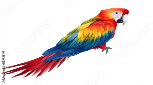 scarlet, macaw, parrot, bird, tropical, feather, wing, vibrant, colourful, detailed, perched, wildlife, avian, animal, nature, exotic, fauna, bright, red, blue, yellow, green, white, background, design, element, graphic