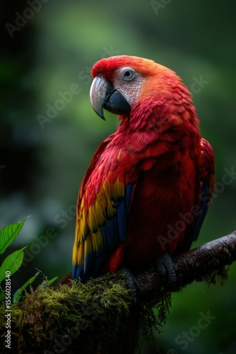 scarlet, macaw, bird, parrot, rainforest, tropical, wildlife, nature, fauna, tree branch, avian, colourful, red, yellow, blue, feather, costa, central, america, amazon, south, beak, eye, forest, animal, wing, plumage, exotic, moss, greenery, daytime, outdoors, wild, ecology, environmental, conservation, ornithology, species, neotropical, ara, macao, environment, natural