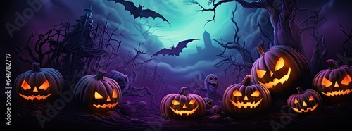 Scary Halloween background. Purple themed Halloween landscape concept. Happy Halloween!