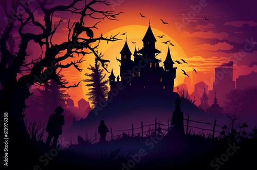 halloween, house, background, horror, skittish, scarey, illustration, cartoon, moon, haunted, creepy, night, cemetery, cemetery, gothic, pumpkin, scene, design, silhouette, october, castle, black, autumn, ghost, party, pumpkin, holiday, dark, tree, fear, bat, mystery, sorcerer, art, celebration, trick, boo, gravestone, wallpaper, purple, bat, panorama, lantern, magic, horizontal, moonlight, decoration