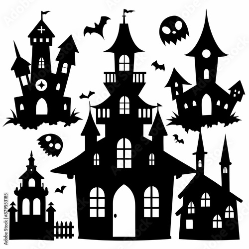 Scary Halloween house vector illustration, Halloween haunted house vector art, haunted house silhouette, haunted house