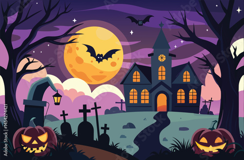 halloween, moon, night, house, bat, castle, haunted, pumpkin, autumn, skittish, silhouette, vector, tree, dark, holiday, illustration, scarey, horror, bat, cartoon, october, hill, black, celebration, cemetery