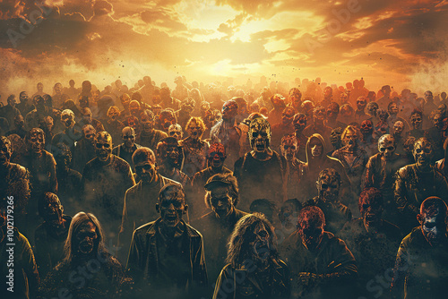 Scary zombie wandering in a street with dramatic lighting on celebration holiday Halloween