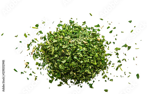 scattering of mixed chopped dried green herbs isolated on transparent background, showcasing vibrant colors and textures that evoke freshness and natural flavor
