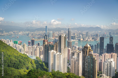 scenery of Hong Kong's Victoria Harbour and skyscraper buildings cityscape from Victoria Peak