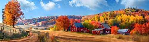 landscape, nature, fall, autumn, tree, foliage, hill, countryside, rural, scenic, farm, barn, house, leaf, colours, season, sky, field, road, path, panorama, picturesque, serene, tranquil, idylli, pastoral, bucolic, rustic, vibrant, season, harvest, vista, rolling, mountainous, craggy