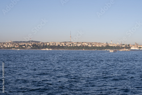 sea, strait, bosphorus, panorama, view, walk, sky, boat, istanbul, tour tourism, landscape, coast, shore, ship, city, port, pier, bay, blue, calm, dusk, trip, sun, sail, wave, day, heat, ray, radiance, line, tide, mast, arch, road, path, hill, gulf, edge, dock
