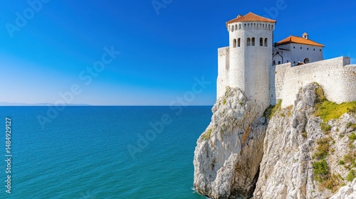 Scenic Coastal Castle on Rocky Cliff Overlooking Calm Blue Sea