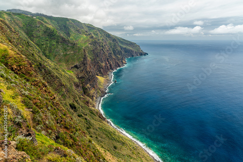 Scenic panoramic view from Miradouro do Fio on a summer day, Madeira island, Portugal.