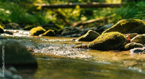 stream, water, mossy, rock, flowing, forest, greenery, nature, peaceful, serene, tranquil, river, brook, creek, lush, scenery, outdoors, sunlight, natural, environment, vegetation, landscape, beautiful, calming, wood, wilderness, foliage, plant, relaxing, quiet, pristine, habitat, refreshing, scenic, clear, ecosystem, flora, fauna, untouched, rustic, picturesque, fresh, scene, burst, gently, background, copy space