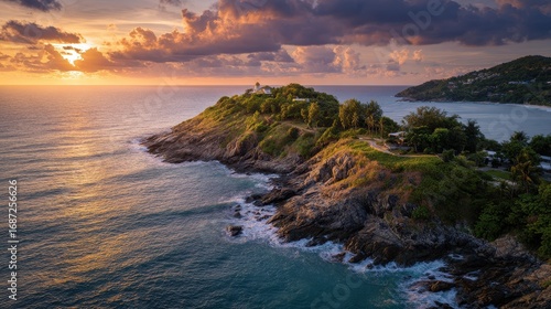 sunset, coastline, ocean, water, horizon, rocky shore, island, landscape, nature, cloud, sky, beauty, travel, tour tourism, serenity, lighthouse, scenic view, greenery, tropical, adventure, relaxation, marin, twilight, sunlight, environment, majestic, tranquil, seascape, cliff, vacation, photo, exploration, blue, wave, peace, destination, natural, wilderness, scenery, view, evening, warm colors, natural light, coastal, panoramic, remote, calm