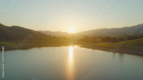 Scenic Sunset Over Peaceful Lake and Vistas