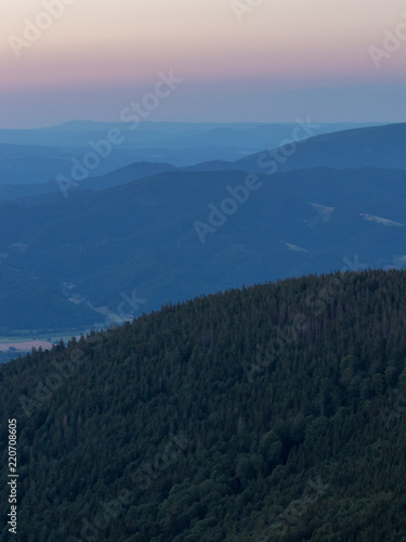 Scenic sunset over the mountains in the Black Forest southern Germany
