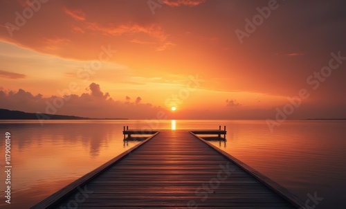 sunset, pier, water, calmness, silhouette, sky, cloud, nature, landscape, horizon, orange, calm, scenic, evening, serene, dock, stillness, peaceful, photo, minimalist, dramatic sky, sun, waterway, natural beauty, viewpoint, seascape, tranquil scene, idylli, vacation, escape, romantic, dawn, twilight, golden hour, travel, outdoor recreation, scenic beauty, relaxation