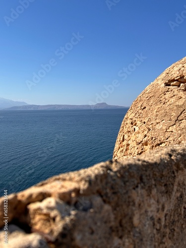 Scenic view of the sea with mountains in the distance, Rethymno, Crete, Greece
