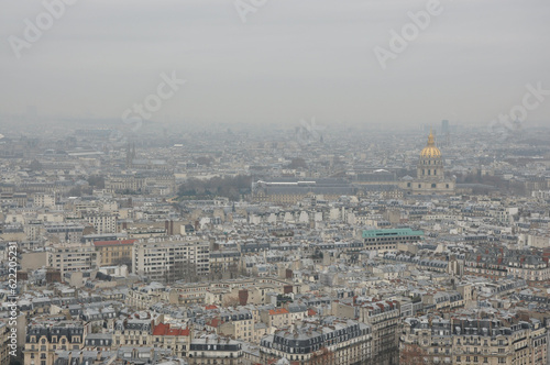 Scenic View over Paris on a hazy day. Paris, France.