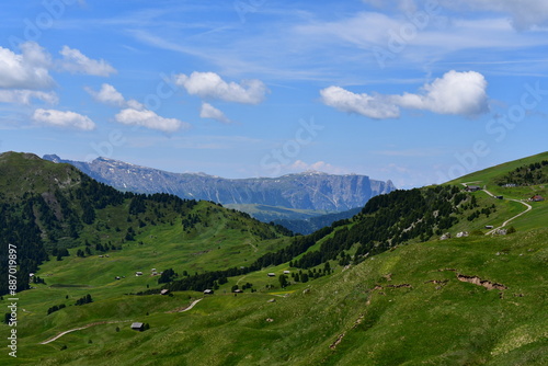 countryside, mountain, heaven, nature, summer, cloud, panorama, grass, hill, forest, alpen, travel, snow, meadow, vale, view, peak, alpine, tree, field, south tyrol, italy, rock, mountain summit, hike, hillwalking, dolomite