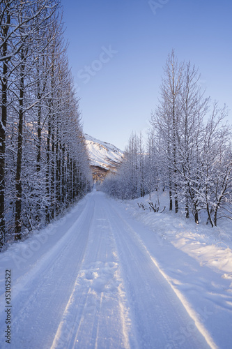 winter, snow, road, cold, countryside, tree, forest, nature, white, heaven, ice, frost, blue, snowy, scene, season, glacé, mountain, day, country, rural, rail, forest