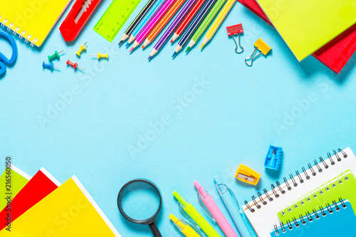 accessory, back, back to school, background, blue, clip, coloured, colourful, copy space, educate, education, elementary, equipment, frame, group, highlighter, isolated, magnifying glass, magnifier, marker, many-coloured, note, notepad, object, office, paper, pen, crayons, ruler, school, september, shop, shopping, stationery, student, study, supply, instructing, tool, top, university, view, white