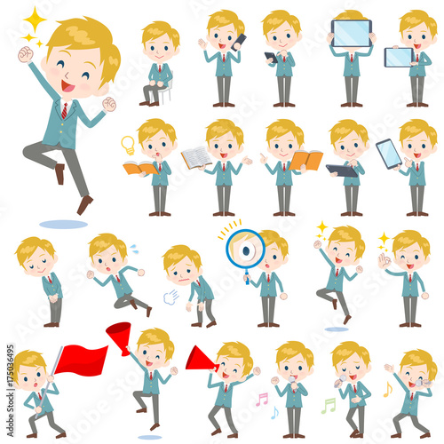 man, student, youth, uniform, school, white, american, alien, blond, blond, smile, seated, chair, smartphone, tablet, cyberspace, communicate, presentation, announcement, book, noto, study, acquaintance, bow, japan, greeting, run, drop, sigh, fatigue, magnifying glass, discovery, magnifying, jump, rejoice, ok, approval, cheer, megaphone, song, music, karaoke, dance, illustration, sweet, set, vector