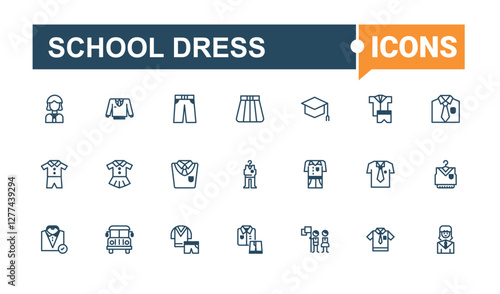 School Dress line icon. Containing clothes, wear, study, japan, uniform, cloth, child, school. Isolated icon. Editable vector outline and solid icons.