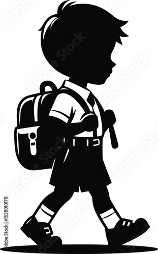 School going kid carrying a school bag silhouette Vector Illustration isolated on a white background