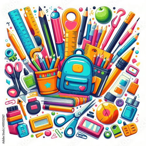 school supplies clip art with Generative AI Techonology.