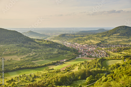 Schwäbische Alb (Swabian Alb) near Stuttgart – Germany, Beautiful View, Hilly, Landscape, green, village, horizon, cloudscape