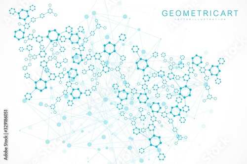 Science network pattern, connecting lines and dots. Technology hexagons structure or molecular connect elements.