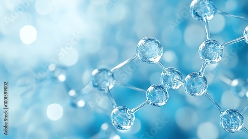 scientific visualization of hydrogen molecules connected in an abstract design on a blue background featuring transparent molecular structures and futuristic chemical bonding concepts