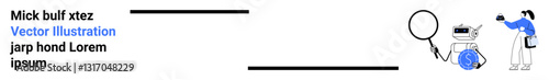 scientist, ai, robot, datum, analysis, technology, magnifying glass, globe, research, exploration, science, innovation, future, education, artificial intelligence, global, investigation, advancement, discovery, study, exam, futuristic, metaphor, business, flat, concept, text, banner, website, web, card, landing, page, blue, black, abstract, automation, creativity, interaction, professional, robotic, experimentation, vector, illustration, icon