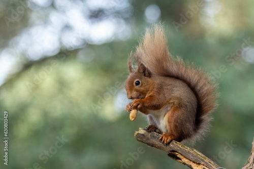 Scottish red squirrel eating a nut
