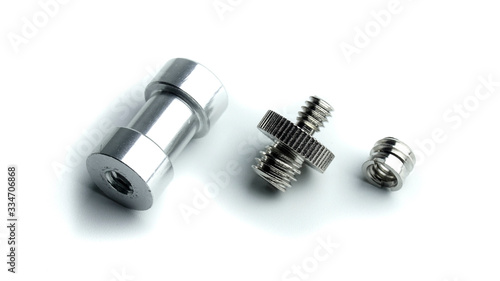 tripod, adapter, clamp, background, connector, chrome, closeup, device, equipment, fitting, fitting, gear, grip, industrial, industry, iron, isolated, light, macro, male, metal, photo studio, photographer, photographic, photo, screw, spigot, racked, steel, tool, universal, white