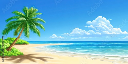 beach, palm, sea, tropical, tree, ocean, sand, island, sky, water, summer, travel, paradise, nature, landscape, vacation, coast, holiday, coconut, caribbean, seascape, palm tree, cloud, resort, sun