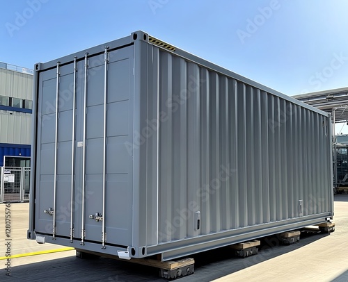 building, sky, industrial, blue, container, warehouse, storage, industry, architecture, shipping, metal, cargo, house, roof, red, steel, freight, factory, structure, beach, cloud, transportation
