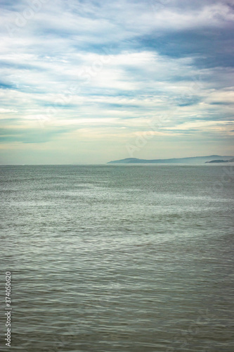 beach, fisheye, sea, horizon, early morning, flat, fog, vacation, weather, wet sand, alone, colours, holiday, us, low cloud, splash, travel, ocean, sand, water, no one, large, tour tourism, light, coastline, high tide, scene, view, stillness, low tide, calm water, expanse, coast, blue, background, dawn, landscape