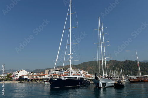 turkey, travel, tour tourism, sea, water, aegean, mediterranean, marin, landscape, region, bay, boat, sailing, sailboat, bow, vessel, yacht, mast, mountain, view, relaxation, beauty, adventure, vacation, transport, walk, board, turkish, commonwealth, pier, port, blue, sky, marina, motor, schooner, promenade, architecture, building, mooring, modern, embankment, ship