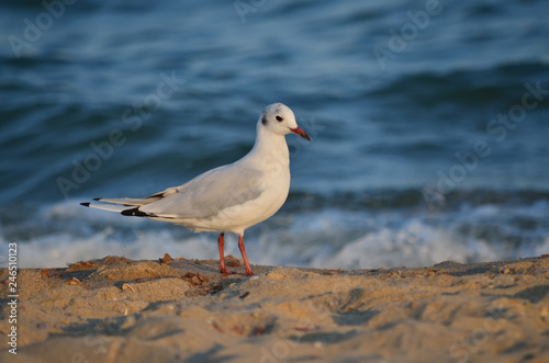 Seagull on the sandy Black Sea coast in its natural habitat.