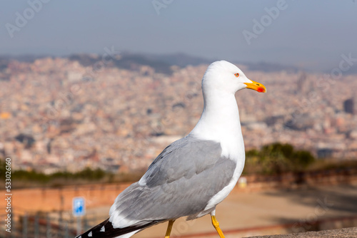 Seagull standing resting at the Montjuic Castle in Barcelona, Spain