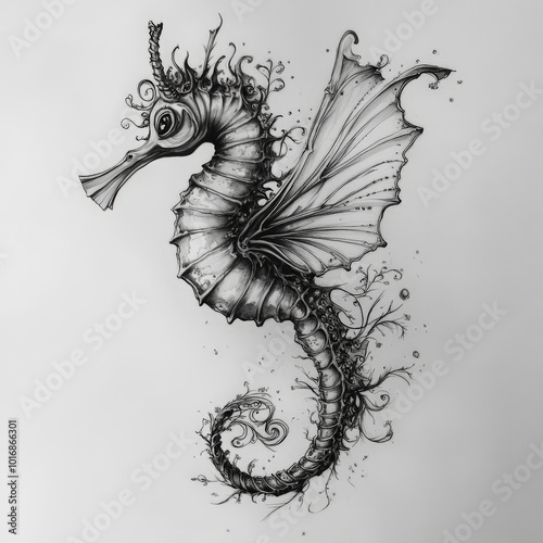 seahorse, animal, illustration, art, symbol, gold, draw, vector, spine, tattoo, sea, design, decoration, fantasy, ornament, power