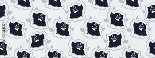 Seamless abstract floral pattern featuring black flowers with details on a grey background. A playful, modern design ideal for textiles, wrapping paper, and decor projects, print