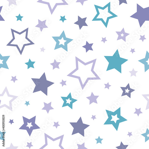 Seamless abstract pattern with little tiny stars of blue and purple colors on white background.