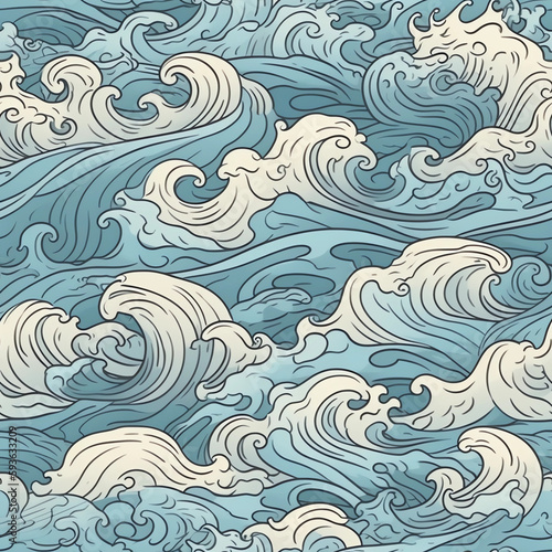 landscape, water, blue, outdoors, cold, wave, ocean, sea, illustration, seamless, repeatable, background, pattern, drawing, wave, nature, print, vintage, design, wallpaper, texture, decoration, art, line
