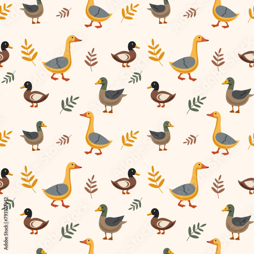 pattern, duck, texture, fabric, hand-drawn, print, nature, farm, graphic, seamless, animal, background, bird, organic