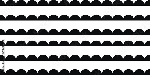 pattern, seamless, background, texture, geometric, abstract, design, graphic, illustration, vector, black, white, monochrome, contrast, simple, clean, modern, minimalist, bold, stripes, horizontal, line, repeating, motif, decorative, border, wave, curve, arch, scallop, edge, cut-out, cut, shape, art, creative, layout, surface, wallpaper, textile, fabric, print, digital, graphic design