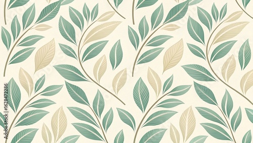 botanical, pattern, seamless, floral, leaf, branch, foliage, nature, organic, design, background, texture, vintage, retro, muted, green, beige, cream, illustration, decorative, art, plant, growth, garden, natural