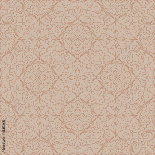 Seamless Classic Floral Line Art Pattern in Beige for Wallpaper, Textile, Packaging, and Background. Vector Design.