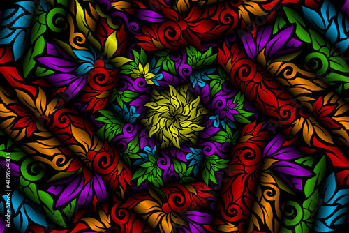 seamless colourful caleidoscope gradient flower and leaf art pattern of indonesian culture traditional tenun batik ethnic dayak ornament for wallpaper ads background